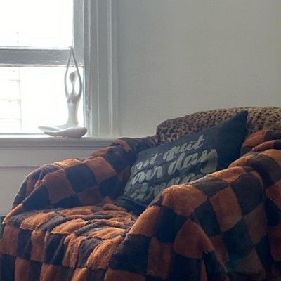 Love the texture on it! A cute design for a teen or on the couch to give it some color. One side is checkered and the other side is all of the darker brown. Double layered and perfect size for an adult to cuddle up on.