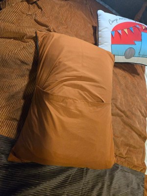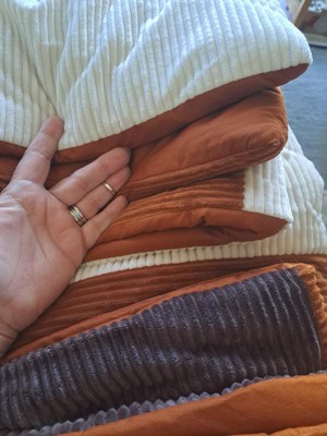 Nice and soft corduroy comforter. Seems nicely made, but we'll see after a few washes if it hold up. I wish the reverse was in the dark brown and not the rust color on the comforter and the sham. I feel its a little lacking on fill.