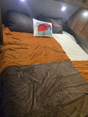 This is perfect for my camper. Very cute and good quality . Love the corduroy material and the colors. Washed really nicely didn’t lump up like some other comforters I’ve tried . Would define recommend.