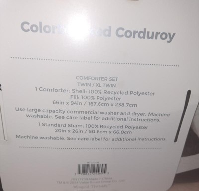 I love the modern look of this textured comforter. It provides great coverage and is corduroy and made of super soft materials. It will match so many different decor. Perfect for kids and adults alike. It washes and drys well and pretty much wrinkle free.