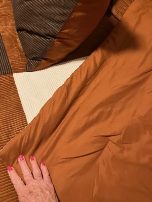 This is a nice warm comforter with autumnal vibes. I can totally imagine laying in bed in October sipping a pumpkin spice latte and watching a good show under this comforter. The corduroy texture is quite cozy and overall it seems well made. Recommend!