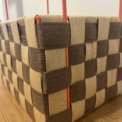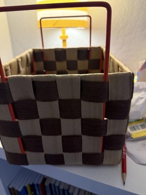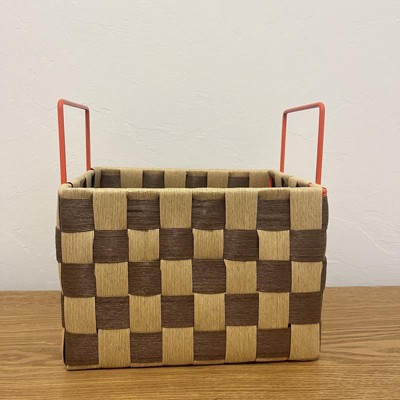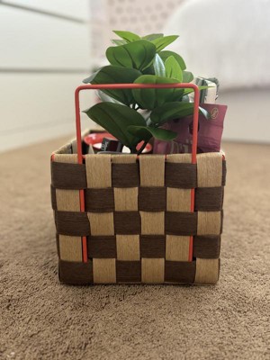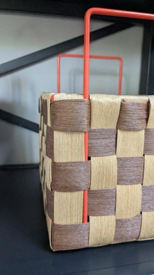 Perfect basket! This basket is so well made and unique. It looks like it came from a cool boutique. It has endless uses. Makes a very cute storage caddy, or gift basket. The handles are metal, which is very nice as well.