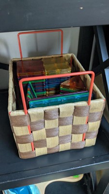 Having young kids, I'm always on the lookout for storage bins that can help contain toys and other lots stuff. This bin has been a wonderful solution! The handles are metal, so they are easy to grab when pulling out the bin or moving it around. We're using it to store our magnetic tiles, and it's a great use to hold heavier items like those. Would definitely purchase more and would also love to see them in other colors!