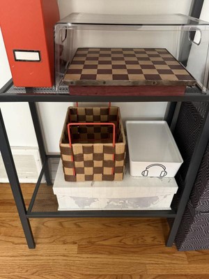 We are always on the lookout for storage solutions and this small crate caught my attention. It has classic checkered look but made modern with the pop of color. It's a fun piece to have if your decor tends to me on the beige end. Look high-end, well made, and sturdy. It's a pieced that looks good out on a shef. We are currently using it to store video games but it can be used for anything such as storing diapers, toys, or trinkets.