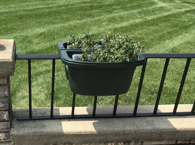 This innovative planter makes it easier than ever to surround your home with lush, colorful plants. The patented design includes sturdy brackets that easily adjust to fit railings from 1" to 5" wide. Simply lock the support arm to the desired width, hang the planter, then fill with your favorite flowers or herbs. No tools, mounting hardware or drilling required. A hidden adjustable support bar keeps planters level. A fast, easy and secure way to dress up railings along a deck or balcony, or bring color to fences. The evaporative grid self-watering system helps keep plants healthy and lets you water less often. Not suitable for round railings.