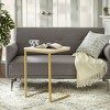 The Seneca C Table from Buylateral brings function to any living space. The C shaped table has an industrial inspired metal frame with a durable white laminated top for a sleek contemporary look. Prop up your laptop, cup of coffee or even a snack. This table is the perfect room accessory adding convenience at your fingertips.