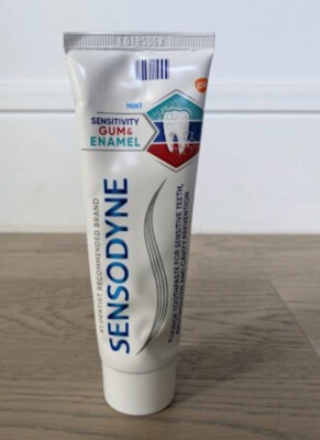 Sensodyne Sensitivity Gum and Enamel Toothpaste is a flavored toothpaste that provides long-lasting, clinically proven sensitivity relief and helps restore gum health while rehardening the enamel when used twice daily for strong and healthy teeth and gums. Gum problems are caused by a build-up of plaque bacteria, and enamel wear can be caused by acids in everyday foods and drinks. Designed with a triple-action formula, this Sensodyne toothpaste helps reharden and strengthen the enamel's surface, and protects teeth from dietary acids while being gentle on enamel. With a refreshing mint flavor, this fluoride toothpaste leaves an extra fresh, clean feeling while feeling gentle on gums. Sensodyne Sensitivity Gum and Enamel mint toothpaste comes in a recyclable carton. For trusted daily oral care, choose Sensodyne, the #1 dentist-recommended toothpaste brand for sensitive teeth.