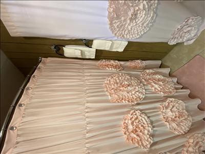 Add charming texture to your bathroom with our Serena Shower Curtain, embellished with hand crafted ruched ruffles in the shape of large flowers for a stylish, vintage glam look. Let this romantic curtain make a statement in your bathroom. Decorate your child's, primary, or guest bathroom with the pretty texture of this cream shower curtain. Ideal for those with Parisian chic, coquette, or vintage glam decor style. This beautiful fabric shower curtains for bathroom measures 72 inches wide by 72 inches long and is crafted from a soft microfiber fabric. This feminine ruffle shower curtain gives your space a nice, fresh look and feel. Each side of this shower curtain measures 72 inches and should fit most standard bathtubs. The 12 button holes at the top of this shower curtain make it easy to hang with hooks or rings, ensuring a simple installation process. Because this is a fabric shower curtain, we recommend pairing it with a liner, sold separately. This shower curtain is STANDARD 100 by OEKO-TEX¨ certified, all components have been tested and certified free from harmful substances. Due to the delicate design we recommend dry cleaning this bathroom curtain. But you can machine wash cold on the gentle cycle. Tumble dry low and use a steamer if needed. Please refer to care label for full best results when cleaning.