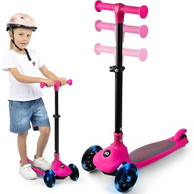 SereneLife 3-Wheel Foldable Kid Kick Scooter - Adjustable Handlebar, LED Lights