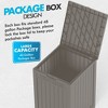 Keep your home and yard clean with our versatile trash storage solution. Made of recyclable resin material, it's waterproof and fade-resistant, ensuring durability in any weather. The sturdy design prevents bending, warping, or breaking, and it's easy to install without the need for screws. With a 48-gallon capacity, it also prevents porch theft with an option to lock (lock not included), keeping your deliveries private, hidden, and protected.