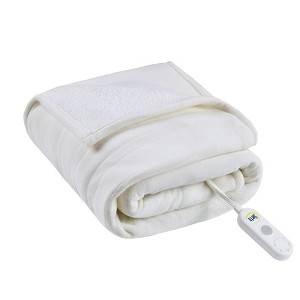Serta 50"x60" Fleece to Shearling Electric Heated Throw Blanket Ivory: Midweight, Machine Washable, 3-Year Warranty