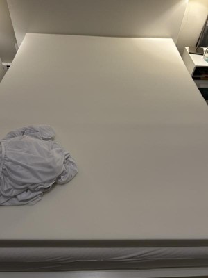 This made our bed a lot softer and added some additional height which I really like. It came rolled up and expanded right away, as soon as I laid it on my bed. It does have somewhat of a strong smell that I think you would want to air out for a day or two. I love that it comes with a cover that goes over the topper and your mattress. It stays put and I’m really happy with it.
