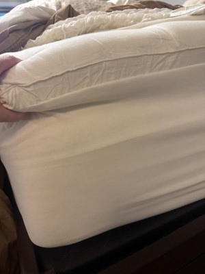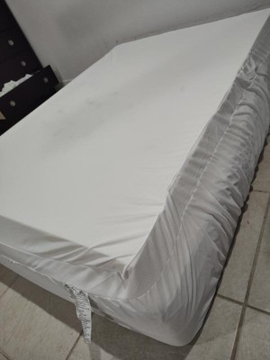 This is a great quality mattress topper! My daughter was in heaven when I put this on her bed. I love that it comes with the mattress cover also. It makes putting the sheets on it very easy. The only negative was the smell for the first few days after you opened the package but that went away and my daughter is sleeping like a baby.