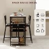 Fulvari Set for 2 Dining Table with Open Storage Shelves, Cup Holder & Wine Rack, Bar Table and Chair for Apartments Kitchen Corners Small Space
