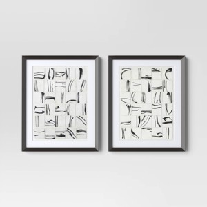 (Set of 2) 16"x20" Patterned Lines Abstract Framed Arts Black - Threshold™