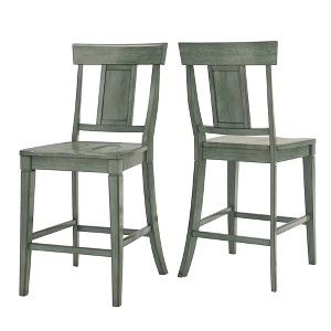 Add a beautiful, rustic look to your dining space with the South Hill 24" Panel Back Wood Counter Height Chair (Set of 2). The chairs' visible wood grain and graceful panel back add a sense of antique charm to this design. This chair set is perfect for casual kitchen dining, or placed around a counter height table. The chairs are available in several distressed finishes, including neutrals and bright hues, so you can mix or match colors and express your unique design taste.