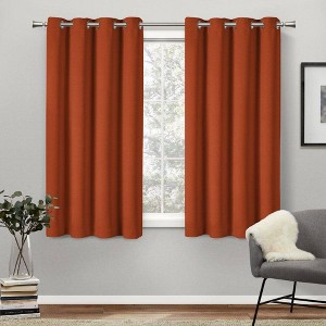 Enhance your windows with the Exclusive Home Curtains Academy Blackout Grommet Top Curtain Panels. Created with smart fabric to eliminate exterior light from shining through. These curtain panels will prevent harmful UV rays from reaching your floors and furniture while saving energy costs and regulating the room temperature. Constructed with matte silver grommets, these curtain panels can be hung on a curtain rod up to 1.25" diameter. These curtain panels will also provide privacy in the room. Perfect for any space.