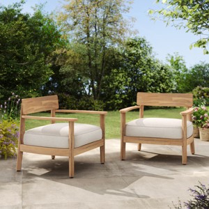 Elevate your outdoor retreat with this acacia wood club chair, crafted for those who appreciate a blend of natural beauty and contemporary comfort. Constructed from premium acacia wood, this chair is designed to withstand the elements, boasting impressive durability and a timeless look that enriches any patio, garden, or porch. The sturdy frame offers reliable support, holding up to 250 lbs, so you can relax with confidence season after season.