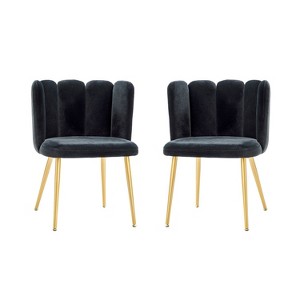 Product Name: Set of 2 Barbara Velvet Vanity Stool Moden Accent Side Chairs For Living Room With Golden Metal Legs| ART OF LIVING DESIGNS-BLACK