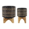 - STYLISH MODERN DESIGN - Elevate your home decor with this set of two black ceramic planters featuring an intricate textured pattern. Paired with sleek bamboo wood stands, these pots add a contemporary yet natural touch to any indoor space, from living rooms to offices.