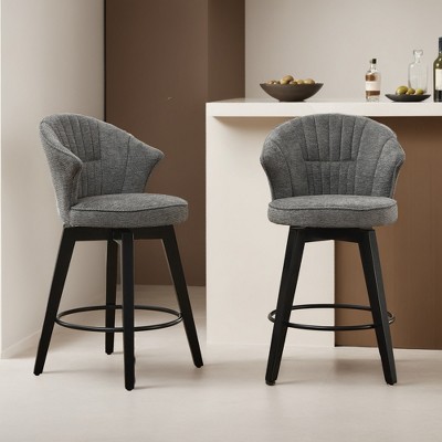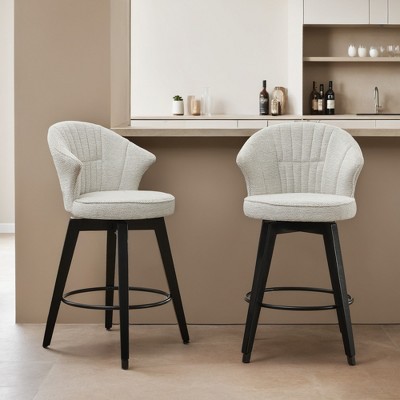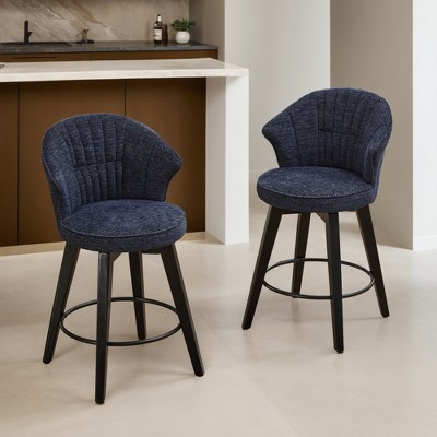 Swivel Bar Stools Set of 2 - 25" Counter Height Adjustable Stools with Solid Wood Legs & Chenille Upholstery, Leveling Feet? - Leovsnove
