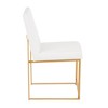 - Modern elegance at its finest, the Fuji High Back Dining Chair features an extra-wide (and extra comfortable) upholstered seat, high padded backrest, and stylish metal frame. The perfect dining chair, the Fuji is multi-functional and can be used as extra seating in a sitting room or as a stylish office chair. Available in stainless steel or gold metal frame and a variety of sleek upholstery colors. Pair with the Fuji Dinette Table for a complete look.