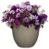 The Honeysuckle planter offers a timeless design to blend seamlessly into modern, minimalist & traditional decor. The look of ceramic or stone in a lightweight & durable high density resin. Offered in two sizes, these beautiful & easily moveable planters are perfect for mixing & matching on your patio, pool deck, sun porch, front steps or indoors. UV coated finish protects color from fading for indoor or outdoor use. Planters are delivered without drainage holes, which are easily drilled in the bottom as needed. Pairs perfectly with all flowering plants, small trees, shrubs & vine varieties. Set of 2. Height: 10.5 inches Depth: 13 inches