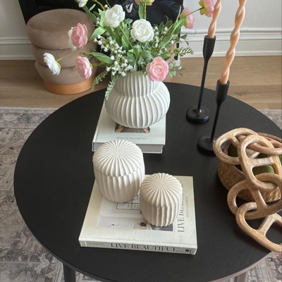 Decorate your home in artful style with the Set of 2 Matte Ceramic Canisters from Threshold™ designed with Studio McGee. This two canisters come in neutral shades and two different sizes to make the pieces great for displaying on a tabletop or shelf. Made with ceramic material, the lidded canisters feature a ribbed design for a textured look.