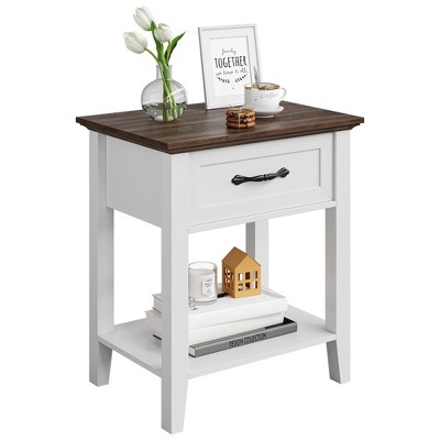 - [2 Tiers Storage Shelves]: The end table has a drawer with a handle for storing small items and keeping your bedside tidy. The bottom has an open storage shelf, perfect for books, decorative items, etc.