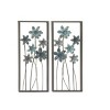 Metal Floral Wall Decor with Black Frame Set of 2 Gray - Olivia & May: Iron Botanical Sculptures, Indoor Vertical Display