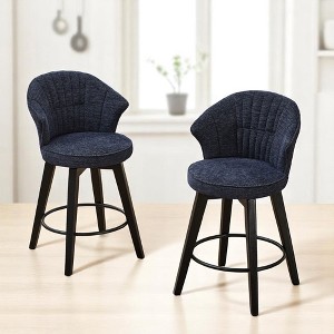 Designed for comfort and functionality, this set of two modern wingback swivel bar stools blends timeless elegance with practical performance. Upholstered in soft, stain-resistant chenille and built with a solid wood frame, these stools feature a whisper-quiet 360° swivel, leveling feet for uneven floors, and a contoured ergonomic design. With a seat height of 25", they’re the perfect fit for 36" standard kitchen counters, offering plush comfort and stability for casual meals, home bars, or gatherings.