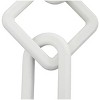 Add a bold accent to your console table or bookshelf with these set of 2 chain links laid across, curved, or stacked atop books for a modern art sculpture aesthetic. This item ships in 1 carton. Please note that this item is for decorative use only. Wood sculpture makes a great gift for any occasion. Suitable for indoor use only. This item ships fully assembled in one piece. This white colored statue comes as a set of 2. Contemporary style.
