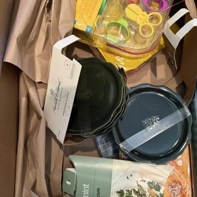 Purchased 3 sets of these plates in store intending to use for Thanksgiving only to find out after opening that there are Christmas trees on them, which the packaging covered the center of the plate hiding the trees. Target, PLEASE have the image of the plate displayed in store or a description on the packaging….all of the other matching stoneware in store did not have Christmas trees on them…so disappointed that I won’t be able to use these for Thanksgiving :( otherwise a cute plate! But would still prefer without the tree emblem so that the plates can be used throughout the year