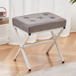 SEVOBAL Ottomans and Benches presents a sophisticated tufted foot stool combining elegant grey velvet with sturdy X-frame metal design. The diamond-tufted high-density foam cushion delivers superior comfort while serving multiple functions as footrest, vanity seat, and occasional stool. Featuring non-slip protection and versatile styling, this piece adapts seamlessly to various interior settings from bedrooms to living areas, offering both aesthetic appeal and practical utility.