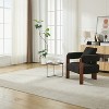 Bring comfort and modern elegance to your home with this Teddy upholstered accent chair. Featuring a soft boucle-inspired fabric, the chair offers a cozy and inviting feel that complements any living room, bedroom, or reading nook. Its unique ring-shaped armrests with a hollow gap between the seat and arm create a stylish, airy design, while three wide, sturdy solid wood legs provide lasting stability and support. The generously padded seat cushion and supportive backrest with an additional pillow ensure maximum comfort for lounging or reading. Whether you’re adding a chic accent to your space or creating a cozy corner for relaxation, this chair combines durability, functionality, and style in one timeless piece.