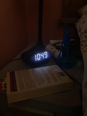 This alarm clock works as expected. It is a nice compact size and plugs directly into the wall. The numbers are large and easy to see in daylight or in the dark. It does give off a bright, white light that is unpleasant to have near your head in the nighttime.