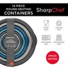 SharpChef 14pc Round Plastic Food Storage Container Set, Stackable, Nesting, Airtight Leak-proof Lids, Microwavable, 7 Colors