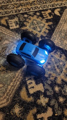[This review was collected as part of a promotion.] It is a very cute little that caught my son's eyes right away. It is pretty neat that it can keep going even when it is flipped over. It took us a little to get used to the remote control. Overall, pretty cool little RC stunt car.