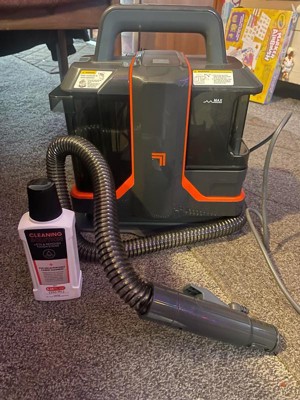 [This review was collected as part of a promotion.] Very pleased with this spot cleaner!! It comes with a tough stain solution and two different cleaning heads. I used it on my sofa and it worked wonders! Super light weight! Easy to assemble. It didn't leave the sofa soaking wet like other spot cleaners we've tried. Easy to use! - very user friendly.