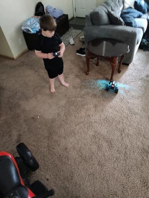 [This review was collected as part of a promotion.] Once you get the hang of using both joysticks you can drive a bit well. Initially it was hard just going down a straight line down the hallway. Nice sleek look and colors but it's a little tricky driving it unfortunately.