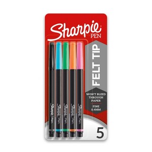 Sharpie 5pk Felt Marker Pens 0.4mm Fine Tip Multicolored: Quick Drying, Fade & Water-Resistant, Porous Point, 5 Colors