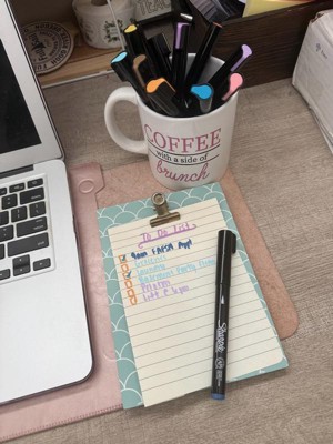 [This review was collected as part of a promotion.] I tried these and found them to be an in between of the thin sharpie markers and regular sharpie markers. It’s a littleee too thick for writing in a card (I preferred the thin ones for this), but is good for drawing and wanting something a little thinner than the regular sharpies. The colors were all really nice and vibrant and I love that it includes a white color too. It’s very crisp. Could be a great addition to your sharpie collection!