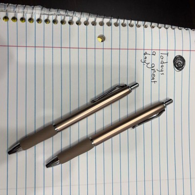 [This review was collected as part of a promotion.] These are very nice pens. I love the weight of them with the metal barrel. They feel very comfortable to use and seem more high quality. Some of the plastic pens break so easily. I have little kids that throw these around and easily step on them. I'm thankful for a nice high quality pen. The price is very reasonable. I can use these in multiple places. I love the sleek design I received an incentive to write this review.