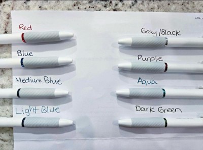 [This review was collected as part of a promotion.] 8 pack of pens with some interesting colors, many of which we didn’t have in house already. The gel flows smoothly and glides over paper very easily. I like the look of the pens as the white stands in a dark drawer, and I just kind of feel a little classy using them. The grip of these pens is nice and soft and, most importantly, solidly affixed to the pen barrel so that it doesn’t spin or shift. Overall a great set of pens. I received an incentive to write this review.
