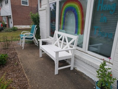 A: The bench is made from HDPE (High-Density Polyethylene) and plastic for the frame.