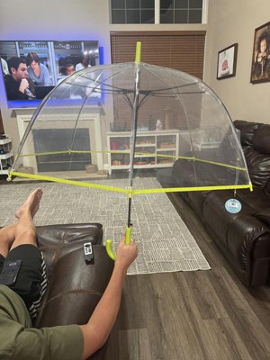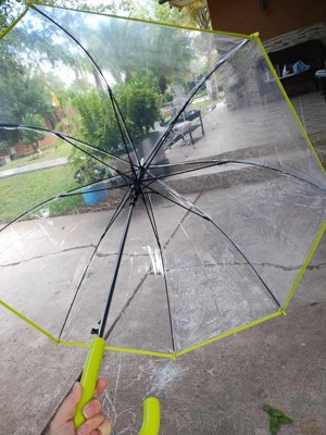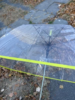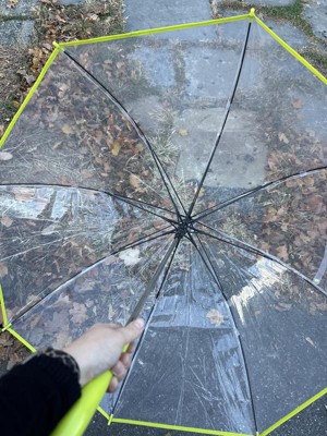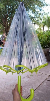 This umbrella is a family favorite! Both my kids and I love this umbrella. My kids have extra fun in the rain because of the see-through clear material and the neon green adds a nice subtle pop of color. It’s also nice to have the clear material so that my kids are able to see in front of them while walking. The size is also bigger than expected. I can comfortably share the umbrella with my oldest son. The umbrella is light weight and very well made. I highly recommend this! We are looking to grab 2 more of these!