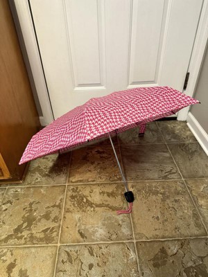 It's a cute umbrella that is compact, so it was great to travel with or throw in my bag. But! The quality is low and won't last long. Forget even using it on a rainy and WINDY day. Just do yourself a favor and spend more money on a higher quality umbrella. You'll save money in the long run.