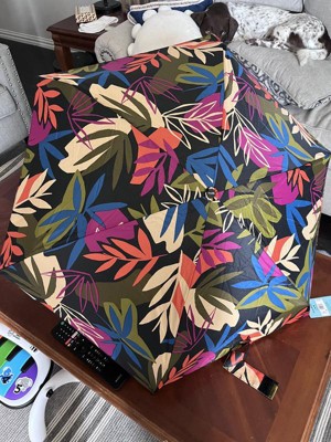 This umbrella is easy to open and close, has an ergonomic handle with a loop, and is very sturdy. The design is gorgeous, bright tropical pattern with vibrant coloring. It does the job and looks great!