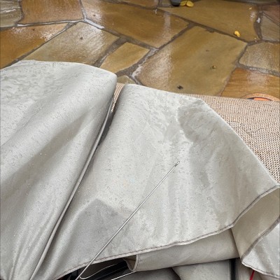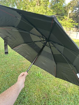 arrived with multiple tears in the fabric. i'm keeping it because I can't be arsed to return a $25 umbrella, but I won't buy another from either shedrain or target, considering the quality control.