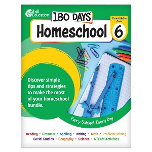 Shell Education 180 Days™: Homeschool Grade 6 Set | Inspire your sixth grader’s independence and critical thinking with engaging activities that strengthen skills in reading, math, science, and more. Set your sixth grader up for success with this all-in-one homeschool collection featuring books, flashcards, conversation card activities, and a Parent Engagement Guide. Covering every core subject along with enrichment opportunities, this thoughtfully designed set offers structured daily practice, meaningful skill development, and interactive learning. With the added support of the Parent Engagement Guide, parents gain tips and strategies to make homeschool learning productive, positive, and engaging—ensuring consistent growth and sparking a lifelong love of learning. In this bundle: Grade 6 Parent Guide, 180 Days™: Reading for Sixth Grade, 2nd Edition, 180 Days™: Language for Sixth Grade, 180 Days™: Spelling and Word Study for Sixth Grade, 180 Days™: Writing for Sixth Grade, 180 Days™: Math for Sixth Grade, 2nd Edition, 180 Days™: Problem Solving for Sixth Grade, 180 Days™: Social Studies for Sixth Grade, 180 Days™: Geography for Sixth Grade, 180 Days™: Science for Sixth Grade, 180 Days™: Hands-On STEAM for Sixth Grade, Cursive Practice Flash Cards – 56 cards with learning prompts, Multiplication Flash Cards – 56 cards with learning prompts, Division Flash Cards – 56 cards with learning prompts, STEAM In a Jar® – 101 cards with engaging activities, 180 Days Homeschool bundles are available for every grade from kindergarten through 6th, so you can nurture your child’s learning journey year after year with the same trusted support.